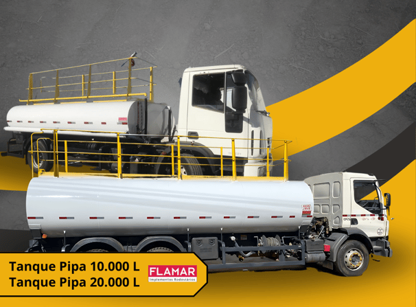Os tanques pipa Flamar, disponíveis nas capacidades de 20 mil e 10 mil litros, são essenciais para o abastecimento de água em grandes obras. Robustos e eficientes, garantem o fornecimento contínuo e confiável, atendendo a diversas necessidades no canteiro de obras.